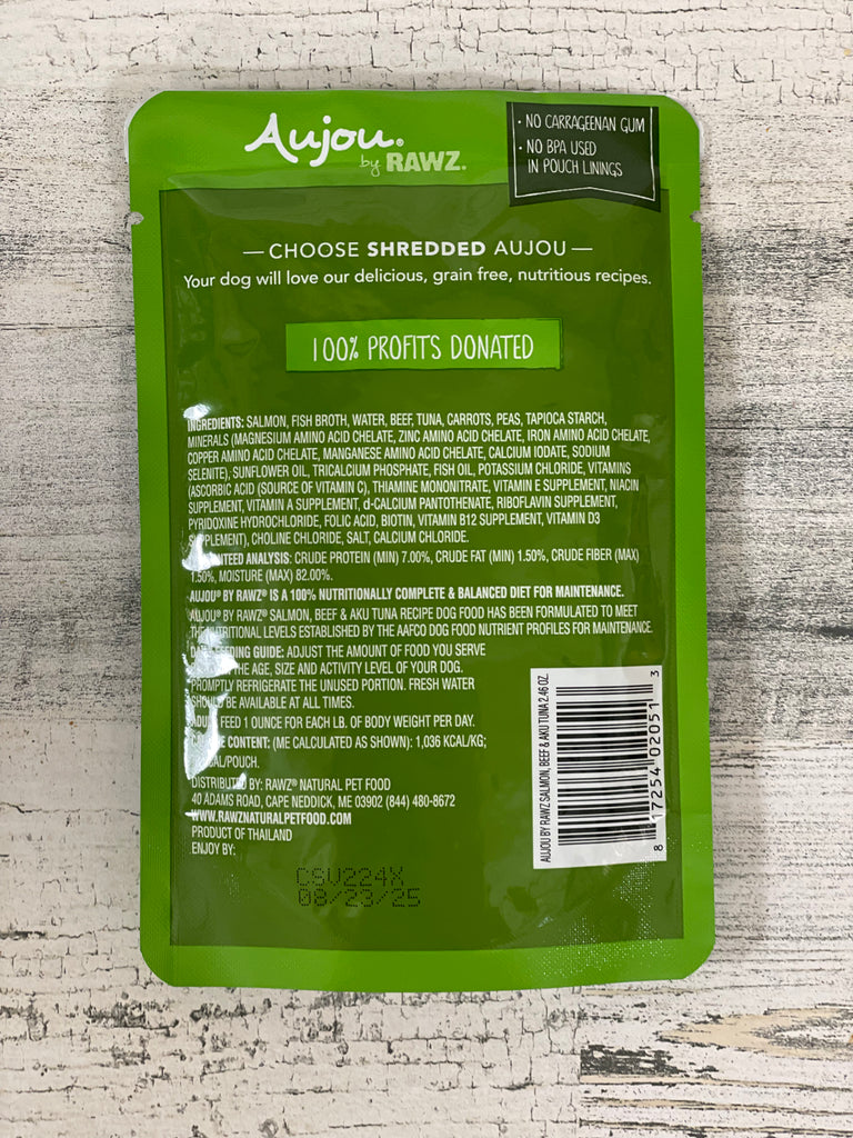 RAWZ Aujou Salmon, Beef & Aku Tuna Recipe Dog Food Pouch
