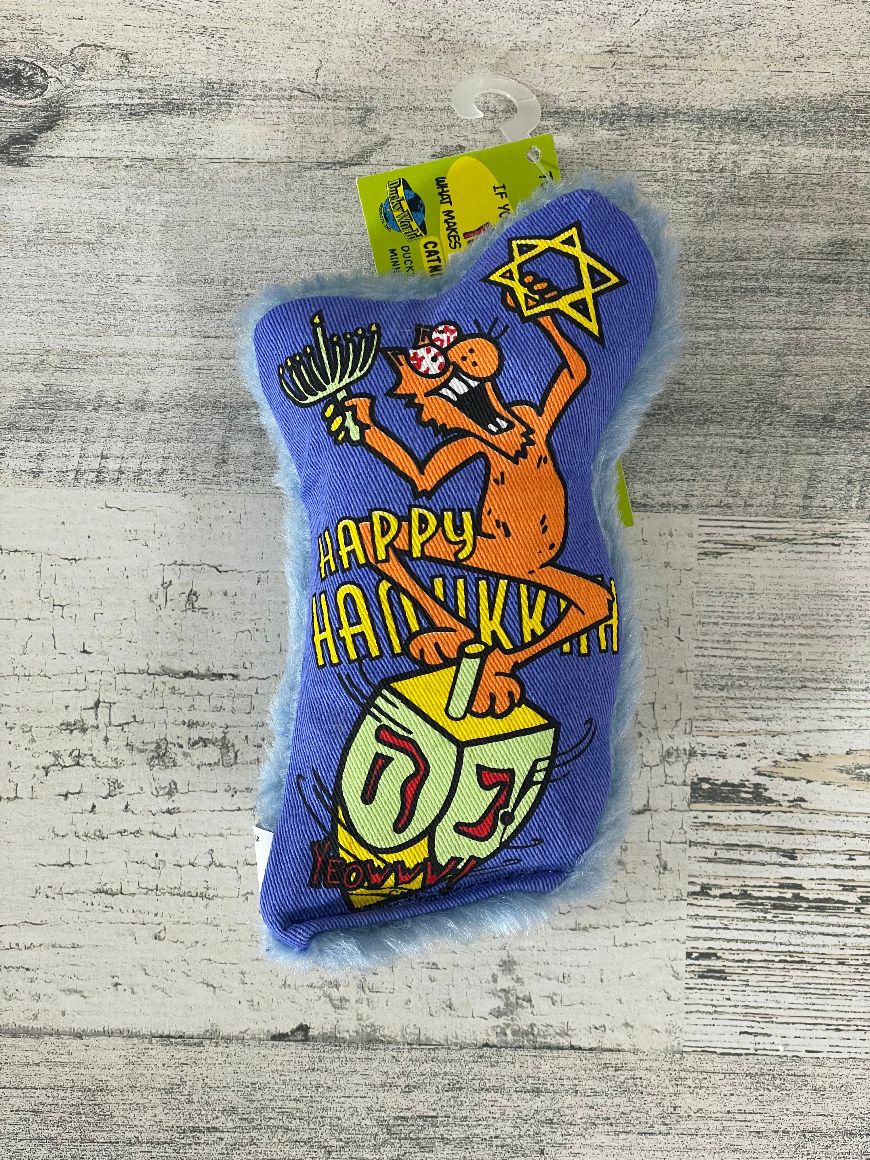 This 6” “YEOWWW!-fully” designed toy hand stuffed with YEOWWW! catnip is sure to spin any cool cat’s dreidel. Sewn inside is crispy, krinkle fabric for an added euphoric holiday experience. Include your pet in celebrating the festival of lights! Your cat will surely thank you!